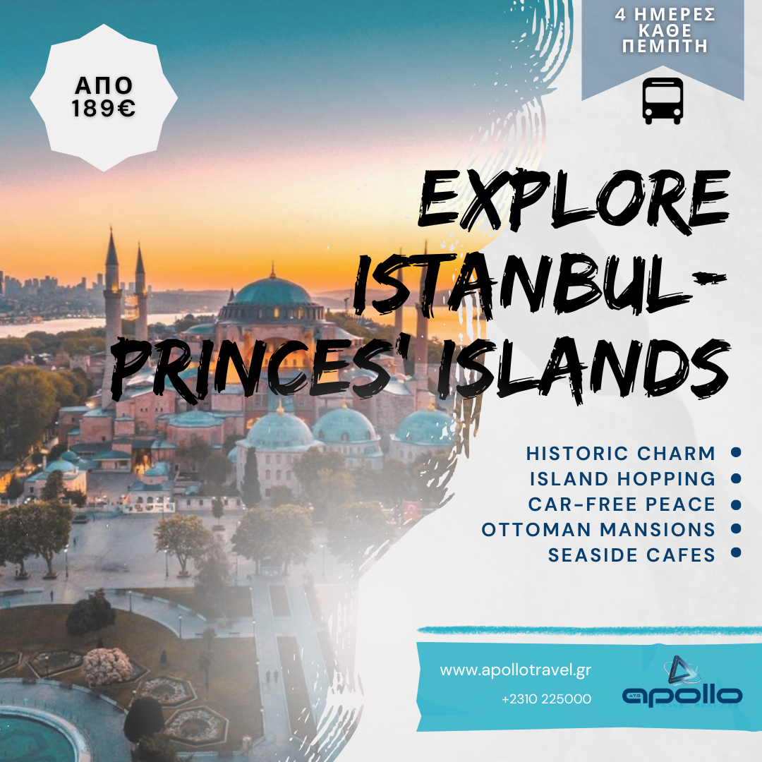 Συγκέντρωση 05.30 π.μ. και αναχώρηση στις 06.00 π.μ. από τα γραφεία μας και με τις απαραίτητες στάσεις, φθάνουμε στα σύνορα. Έλεγχος διαβατηρίων και χρόνος ελεύθερος στα αφορολόγητα είδη. Μπαίνοντας στην Ανατολική Θράκη περνάμε έξω από την Κεσάνη, Μάλγαρα και Ραιδεστό, ταξιδεύοντας παράλληλα με την ακτή της Θάλασσας του Μαρμαρά. Άφιξη στην Κωνσταντινούπολη το απόγευμα. Τακτοποίηση στο ξενοδοχείο και χρόνος ελεύθερος. Το απόγευμα μια πρώτη γνωριμία με την πόλη περπατώντας στα όμορφα και γραφικά στενά του πεζόδρομου του Πέραν και της Γενοβέζικης Magnifica Communita di Perra με επίκεντρο τον Πύργο του Γαλατά , θα σας ενθουσιάσει. Μετά το πρωινό στο ξενοδοχείο μας , η μέρα μας ξεκινά με το ομορφότερο κομμάτι της εκδρομής, την προαιρετική κρουαζιέρα στα στενά του χιλιοτραγουδισμένου Βοσπόρου. Αναχωρώντας από τον Κεράτιο κόλπο και πλέοντας παράλληλα της ευρωπαϊκής ακτής, θα θαυμάσουμε τα παλαιά ελληνικά χωριά σημαδεμένα μέχρι σήμερα από την Ρωμαίικη παρουσία αλλά και τις σύγχρονες αριστοκρατικές συνοικίες με τις πολυτελείς επαύλεις, φτάνουμε μέχρι την δεύτερη κρεμαστή γέφυρα του Βοσπόρου. Η επιστροφή μας θα γίνει πλέοντας παράλληλα της ασιατικής ακτής στο σημείο που θα περιμένει το λεωφορείο μας. Επιβίβαση στο λεωφορείο και αφού διασχίσουμε την πρώτη κρεμαστή γέφυρα και περνώντας έξω από την πόλη των τυφλών την Χαλκηδόνα (Kadıköy) θα καταλήξουμε στο λιμάνι του Μπόστατζι με προορισμό την μαγευτική και καταπράσινη Πρίγκηπο. Άφιξη και ελεύθερος χρόνος να περιηγηθείτε στο νησί για να θαυμάσετε τις υπέροχες αρχοντικές ξύλινες επαύλεις και τα μεγαλοπρεπή κιόσκια των προηγούμενων αιώνων. Όσοι επιθυμούν μπορούν να επισκεφτούν εξ’ιδίων το μοναστήρι του Αγίου Γεωργίου Κουδουνά ψηλά στον λόφο του νησιού. Γεύμα εξ' ιδίων στις παραθαλάσσιες ψαροταβέρνες με τα υπέροχα φρέσκα ψάρια και επιστροφή αργά το απόγευμα στην Κωνσταντινούπολη. Διανυκτέρευση. Μετά το πρωινό θα επισκεφθούμε το Αγίασμα της Παναγίας των Βλαχερνών όπου οι Βυζαντινοί έψαλλαν για πρώτη φορά το 626 μ.Χ τον Ακάθιστο Ύμνο για να ευχαριστήσουν την Θεοτόκο Στρατηγό που λύτρωσε την Πόλη, και σε ανάμνηση αυτού του θαύματος τον ψάλλουμε κάθε χρόνο σε όλους τους ορθόδοξους ναούς μέχρι σήμερα. Στην συνέχεια θα κατευθυνθούμε με το λεωφορείο μας στο ιστορικό κέντρο, όπου άλλοτε βρισκόταν ο Βυζαντινός Ιππόδρομος, περνώντας έξω από το Μπλέ Τζαμί κατευθυνόμαστε προς την Αγία Σοφία προκειμένου να επισκεφτούμε τον γυναικωνίτη της, με τα υπέροχα ψηφιδωτά του ,που πλέον λειτουργεί σαν τζαμί με όλους τους κανόνες που επιβάλλονται. Ακολουθεί η επίσκεψη μας στην Βασιλική Δεξαμενή του Ιουστινιανού με το πολύ ατμοσφαιρικό της περιβάλλον που αποτελεί ακόμη ένα θαύμα της βυζαντινής αρχιτεκτονικής. για να ανηφορίσουμε προς την σκεπαστή αγορά (kapalı çarşı) όπου θα έχουμε ελεύθερο χρόνος στα δαιδαλώδη στενά της για αγορές και παζάρια. Στον ελεύθερο χρόνο που θα έχετε στην Σκεπαστή Αγορά σας προτείνουμε να επισκεφθείτε και την Αιγυπτιακή Αγορά για αγορές μπαχαρικών και εδεσμάτων. Επιστροφή στο ξενοδοχείο, ξεκούραση και το βράδυ προαιρετική διασκέδαση σε νυχτερινό κέντρο με παραδοσιακούς χορούς oriental . Διανυκτέρευση. Μετά το πρωινό επίσκεψη στο Οικουμενικό Πατριαρχείο Κωνσταντινούπολης, το οποίο στεγάζεται από το 1601 στον Ιερό Ναό του Αγίου Γεωργίου στο Φανάρι. Ξενάγηση, προσκύνημα και χρόνος ελεύθερος εφ’ όσον υπάρχ