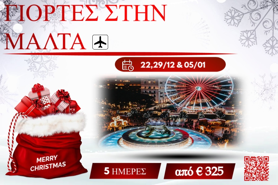 Χριστούγεννα '25 - Πρωτοχρονιά '26 | 5 Ημέρες από Θεσ/νίκη Χιλιάδες τουρίστες από όλο τον κόσμο επισκέπτονται το νησί κάθε χρόνο για να θαυμάσουν τα μεσαιωνικά κάστρα, τις ωραίες ακτές, τα αναγεννησιακά αγάλματα, το έντονο τοπικό χρώμα κι ένα από τα ομορφότερα λιμάνια της Μεσογείου. Πλούσια ιστορία, αξιοθέατα, φύση, νυχτερινή ζωή, γαστρονομία και καλά ξενοδοχεία. Τα Χριστούγεννα η Μάλτα μεταμορφώνεται σε ένα παραμυθένιο χωριό .. Πολλά έθιμα & θρησκευτικές παραδόσεις, κάλαντα από παιδικές χορωδίες, στολίδια παντού, φωτάκια λαμπερά & μυρωδιές από τα παραδοσιακά γλυκίσματα των γιορτών. Τα Χριστούγεννα έχουν μια ξεχωριστή θέση στην καρδιά των ντόπιων Εμείς σας έχουμε ετοιμάσει ένα πολύ ωραίο πρόγραμμα στο οποίο θα δείτε τα καλύτερα αξιοθέατα του νησιού και παράλληλα θα έχετε αρκετό ελεύθερο χρόνο να το απολαύσετε όπως εσείς επιθυμείτε. Εσείς το μόνο που έχετε να κάνετε είναι κράτηση, αποσκευή και χώρο στο κινητό για φωτογραφίες! Γνωρίστε τη Μάλτα μαζί μας γιατί προσφέρουμε... Συγκέντρωση στο αεροδρόμιο 'ΜΑΚΕΔΟΝΙΑ' νωρίς το πρωί, έλεγχος και απευθείας πτήση για την καρδιά της Μεσογείου, τη Μάλτα, πολιτιστική πρωτεύουσα της Ευρώπης για το 2018, ένα νησί που αποτελεί μια πανδαισία χρωμάτων και αρωμάτων. Άφιξη και ξεκινάμε την ξενάγηση στην περίφημη πρωτεύουσα του τάγματος των Ιπποτών του Αγ. Ιωάννη, τη Βαλέτα. Η Βαλέτα είναι οχυρωμένη, χτισμένη πάνω σε ένα στενό ακρωτήρι, πλαισιωμένη από δύο φυσικά λιμάνια και διαθέτει και ένα περήφανο φρούριο, το Saint Elmo. Η πόλη χτίστηκε από τους Ιππότες του Τάγματος του Αγίου Ιωάννη μετά τη Μεγάλη Πολιορκία των Οθωμανών του 1565. Η ξενάγηση γίνεται με τα πόδια, γιατί η κυκλοφορία των αυτοκινήτων απαγορεύεται στο τμήμα της Παλιάς Πόλης. Πρόκειται για μια μοναδική καστρούπολη με ιδιαίτερη ιστορική σημασία και απεριόριστη ομορφιά. Θα περπατήσουμε στα στενά γραφικά δρομάκια και θα απολαύσουμε τα στοιχεία μιας άλλη εποχής. Θα θαυμάσουμε τους κήπους Μπαράκα, απ' όπου θα δούμε την πανοραμική θέα του μεγάλου λιμανιού της Μάλτας (Grand Harbour) και των τριών ιστορικών πόλεων που συνδέονται με τις δύο μεγάλες πολιορκίες του 1565 και 1942. Αν και το ταξίδι στον χρόνο είναι κάτι ανέφικτο, αυτή η βόλτα στις καστροπολιτείες του νησιού, είναι ένα αληθινό βύθισμα στο παρελθόν. Θα περπατήσουμε ακόμη στον κεντρικό πεζόδρομό Triq IrRepubblika, με τα παλιά κτίρια με τα «κλειστά» μπαλκόνια, τα καταστήματα με τις vintage επιγραφές και θα δούμε τα κάθετα σοκάκια με τα χρυσόχρωμα, ταλαιπωρημένα κτίρια και τα φθαρμένα palazzi που βρέχονται από την αύρα της θάλασσας. Ακόμη θα δούμε το παλάτι του Μεγάλου Μαγίστρου και τον καθεδρικό Ναό του Αγ. Ιωάννη, τον πιο εντυπωσιακό ναό της Μάλτας, εξαίρετο δείγμα μαλτέζικου μπαρόκ. Ο ναός ανεγέρθηκε μεταξύ του 1573 και του 1578 ως μοναστική εκκλησία των Ιπποτών του Αγίου Ιωάννη. Στην επίσκεψη μας στο μουσείο θα θαυμάσουμε δύο από τα πιο φημισμένα έργα του Καραβάτζιο, τον «Αποκεφαλισμό του Ιωάννη του Βαπτιστή» και τον «Άγιο Ιερώνυμο». Μεταφορά στο ξενοδοχείο για να παραλάβουμε τα δωμάτια. Η περιοχή που είναι το ξενοδοχείο σας, είναι ιδανική και για βραδινή βόλτα γιατί η Sliema και η St. Julian’s, σφύζουν από ζωή, διαθέτοντας μεγάλα ξενοδοχεία, εστιατόρια, bar και club. Το Paceville, στην άκρη του St. Julian’s, είναι το νυχτερινό επίκεντρο. Οι ντόπιοι κάνουν passeggiata, δηλαδή βόλτα, στον παραλιακό δρόμο, ο οποίος, αν τον έβλεπες από ψηλά θα έμοιαζε με κορδέλα, δ